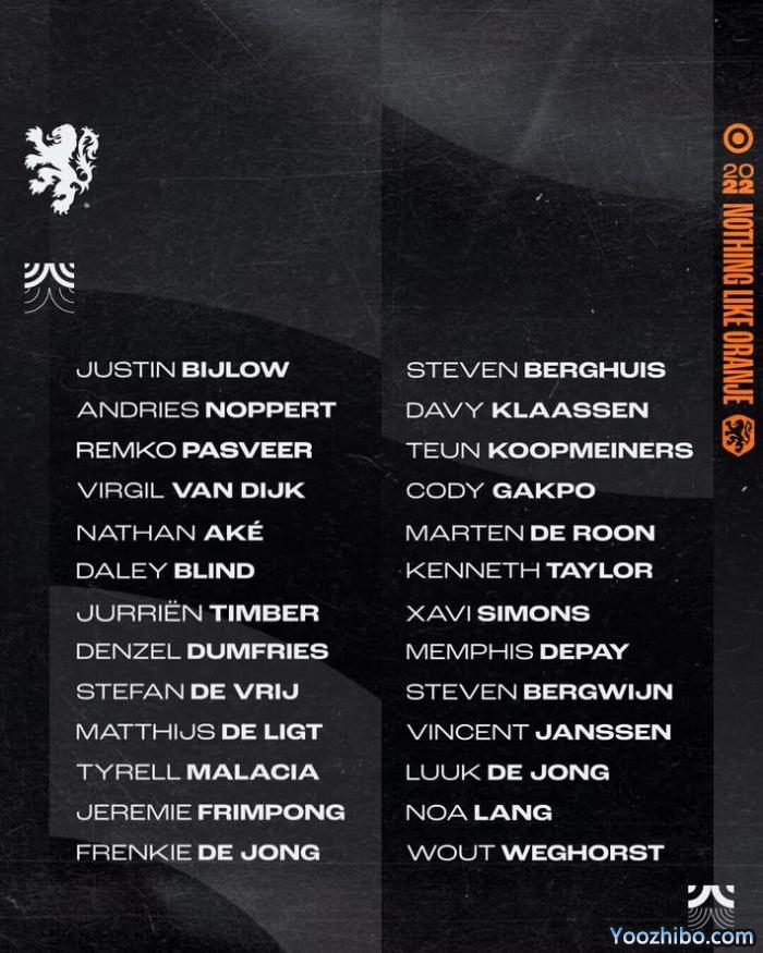 178直播11月11日消息,荷兰队公布了世界杯26人名单,范迪克和弗兰基-德容领衔,赫拉芬贝赫落选。