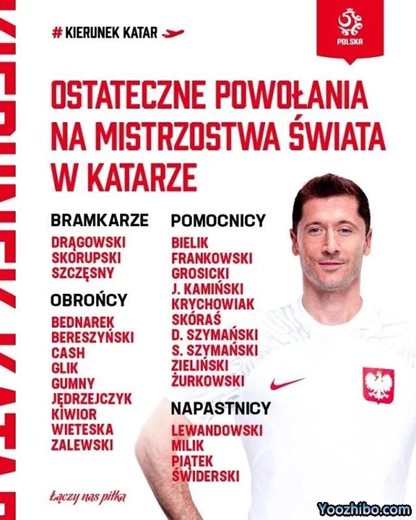 178直播讯 北京时间11月10日晚,波兰男足国家队公布了参加卡塔尔世界杯的26人名单。两届世界足球先生莱万多夫斯基领衔。米利克、什琴斯尼等名将悉数入选。罗马20岁新星扎莱夫斯基,也成功入选。