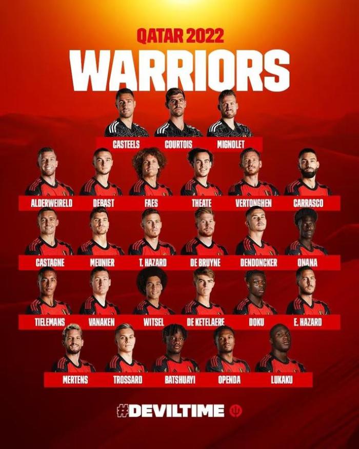 178直播11月10日消息,比利时官方公布了出征卡塔尔世界杯的最终名单,阿扎尔兄弟和德布劳内领衔,费莱尼落选。