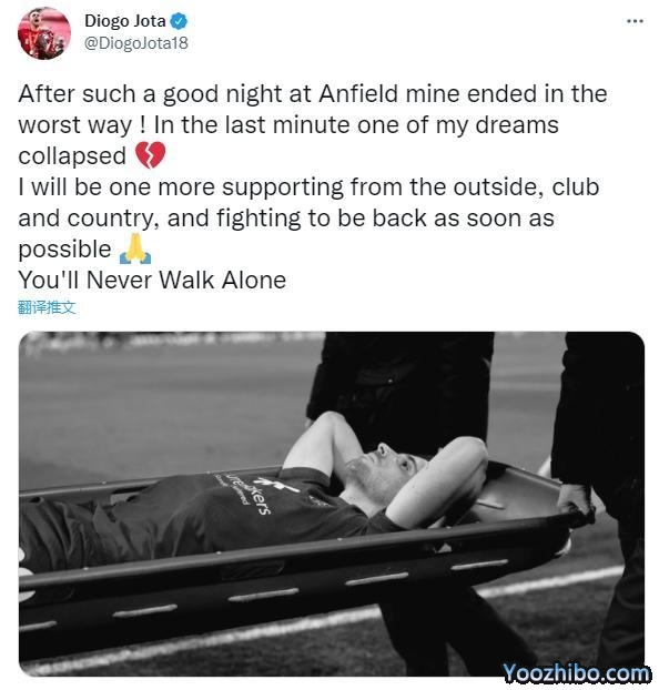 若塔写道:“在安菲尔德经过一个如此美妙的夜晚之后,我以最糟糕的方式结束了这一页。在最后一分钟,我的梦想之一破灭了。”