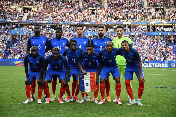 前锋:7号格列兹曼(马竞)、9号吉鲁(切尔西)、10号姆巴佩(巴黎圣日耳曼)、11号登贝莱(巴萨)、18号费基尔(里昂)、20号托万(马赛)