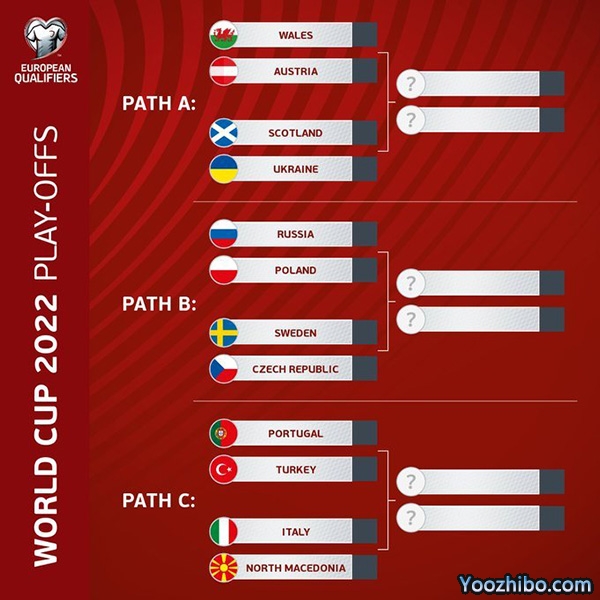 2022卡塔尔世界杯欧洲区预选赛附加赛赛程表