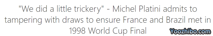 178直播06月13日讯 消息,前欧足联主席普拉蒂尼承认,1998年世界杯主办方故意让法国队和巴西队在决赛前不相遇。