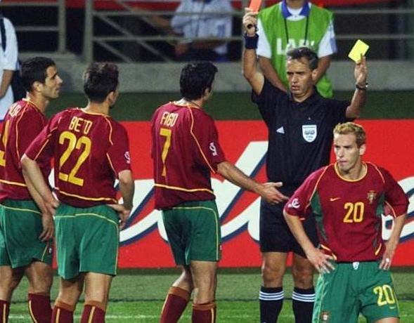 但第27分钟,葡萄牙便遭遇打击,若昂-平托被主裁罚下。而第65分钟,贝托也因为两黄变一红离场。葡萄牙男足不得不面临9打11的局面。最终人数劣势的葡萄牙男足在第70分钟被朴智星打进制胜球。菲戈、鲁伊科斯塔领衔的“黄金一代”,也失去了冲击世界杯冠军的最好机会。