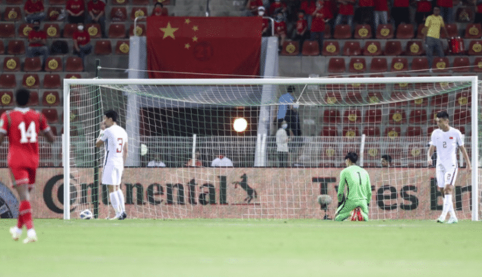 知名足球人董路在社交媒体上晒出了中国队在下半场第74分钟丢球之前,当时中国队看起来防守的人数占优,但其实有多达5人基本没有防守价值,所以也就等于是阿曼队的球员们4打3,最危险的中路,对手3打1,这样的情况下对手撕开中国队的防守,也就在情理之中了。