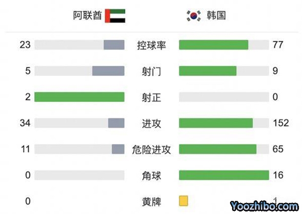 全场比赛结束,韩国队0-1不敌阿联酋队。