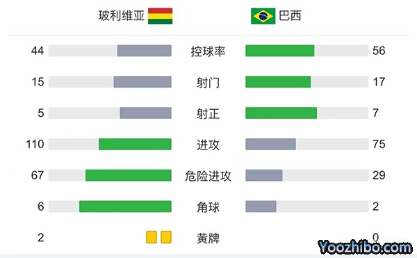 全场比赛结束,最终巴西4-0玻利维亚。