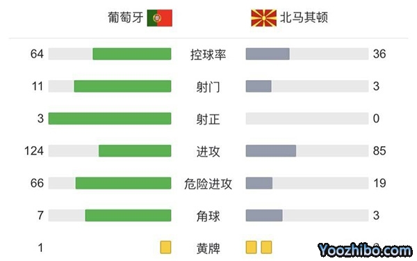 葡萄牙2-0北马其顿 B费双响C罗若塔助攻 进军世界杯