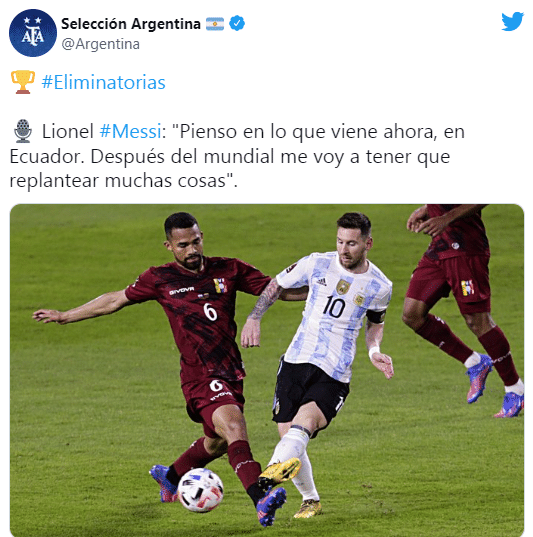赛后梅西表示:“我现在考虑对厄瓜多尔的比赛。世界杯后我会重新考虑很多事情,这取决于我们的表现是好还是不好。希望我们能踢出最好的表现。”