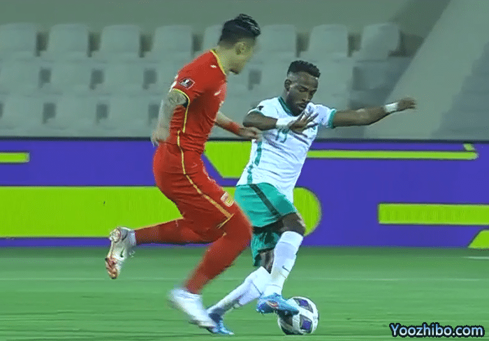 上半场的比赛开始后,两队都没有打出太有威胁的进攻,中国队面对沙特队打得十分被动,皮球想要过半场都十分的难,沙特队将球权牢牢的控制在自己脚下,比赛第12分钟,沙特队获得了本场比赛的第一个角球,穆瓦拉德越位争顶的时候越位了,第14分钟,张琳芃后场失误,沙特抢断后在禁区前沿完成射门,皮球擦着门柱偏出,比赛第21分钟的时候,高准翼精彩的踩单车过人,随后送出一脚传中球,沙赫拉尼把球解围。