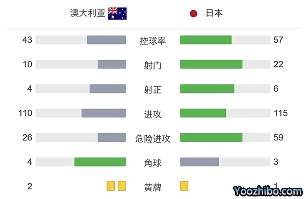 全场比赛结束,日本2-0击败澳大利亚。