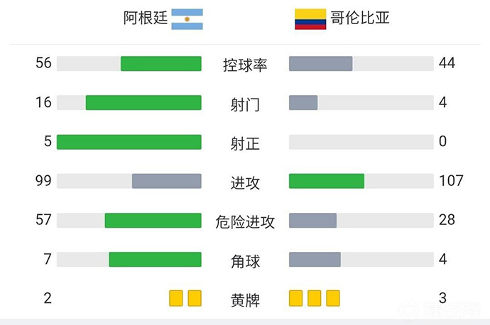 第94分钟,阿根廷前场断球,冈萨雷斯单刀选择横传力量太轻被破坏。全场比赛结束,阿根廷1-0哥伦比亚。