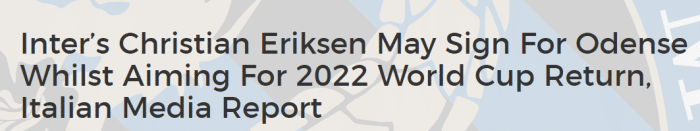 《都体》表示,埃里克森自从本月初就在和欧塞登队训练,欧塞登也正是他的母队。根据意甲联盟的相关规定,埃里克森已经无法再为国米出战。丹麦人将与国米协商解约,他与蓝黑军团原本的合同在2024年到期。
