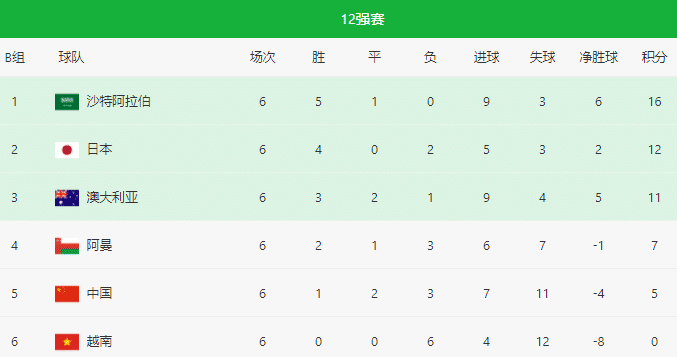 当然眼下国足的情况依旧不容乐观,6轮好之后积5分,落后第三的澳大利亚6分,落后第二的日本队7分,一旦下一轮比赛被日本队击败,那么中国队将有提前无缘直通世界杯,同时距离附加赛也会渐行渐远。所以眼下的中国队还是要努力,争取逆袭获得第三名,虽然难度很大,但也依旧是有一定的机会。