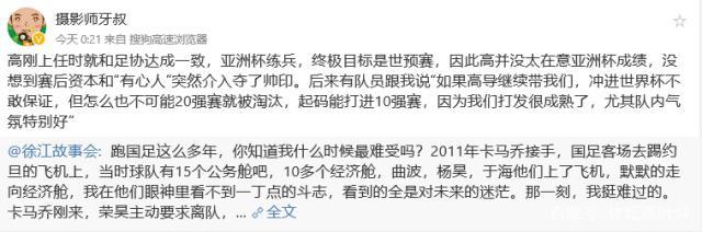 在卡马乔的带领下,国足充满希望的体系和配合没有了,最终国足耻辱的没有在40强赛中出现,当年名宿范志毅就为高洪波鸣不平表示:小高带的挺好的,你换他干吗?