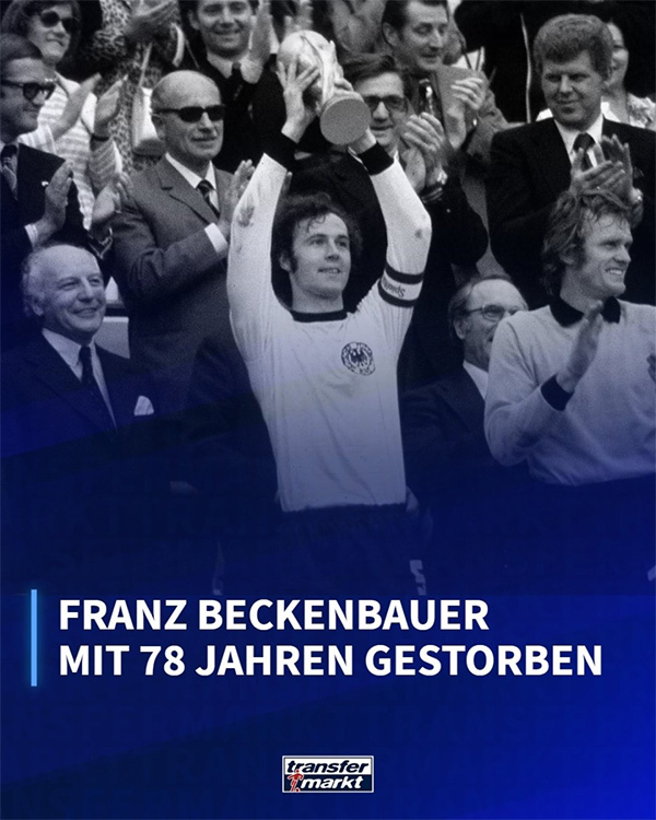 178直播01月09日讯 ,来自德新社的消息,德国传奇球星、“足球皇帝”贝肯鲍尔离世,享年78岁。据悉,贝肯鲍尔的家人向媒体确认,贝肯鲍尔是于德国时间上周日离世,直到现在才将这一消息公开。贝肯鲍尔近年来一直在与病魔作斗争。但近几个月有报道称,情况不断恶化。贝肯鲍尔接受了两次心脏手术,还接受了髋关节手术。2023年,贝肯鲍尔失去了一只眼睛的视力,并患上了一种叫做眼梗塞的疾病。最终,这位足坛传奇还是没能击败病魔,在2024年的新年伊始便告别了人世。