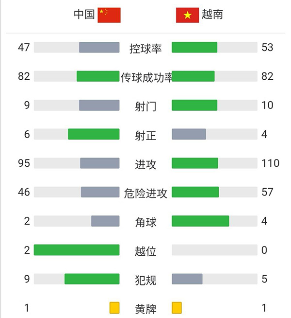 第80分钟,越南长传球找到前场,胡晋才挑球过人后找到空档一脚打门将球打进,越南1-2中国。