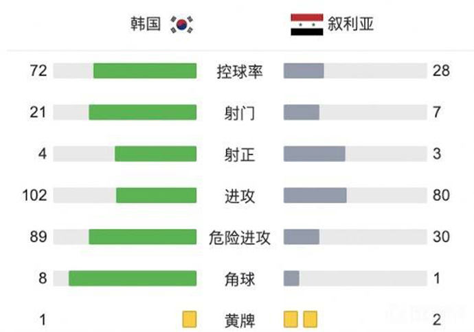 第46分钟,外围黄喜灿闪开角度一脚远射,球被易卜拉欣-阿尔马没收。2分钟后,韩国率先取得进球!禁区前左侧黄仁范远射破门!韩国1-0叙利亚!