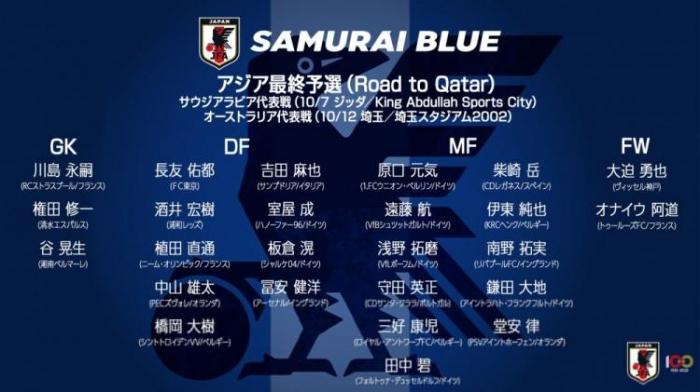 178直播9月28日讯 今日,日本公布了10月世预赛大名单,其中久保建英、古桥亨梧因伤缺席。