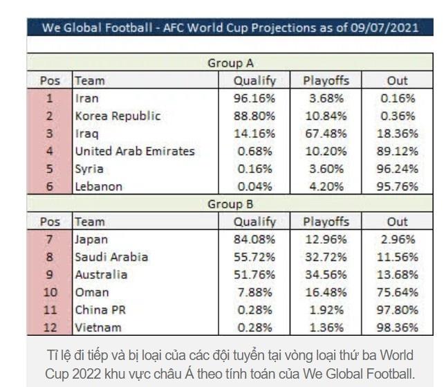 178直播9月09日讯 ,12强赛各队都踢完了第二轮,下一轮将会在10月初开打,外媒We Global Football计算出12支球队的出线和被淘汰概率。