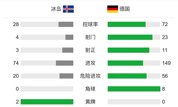 第4分钟,德国队送过顶长传球到弧顶处,基米希停球敲到左路,萨内横传球到门前,格纳布里跟进包抄破门,裁判通过VAR示意进球有效,冰岛0-1德国!
