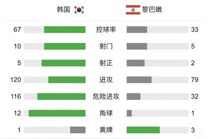 补时阶段,外围黄喜灿一脚远射,稍稍偏出左侧底线。最终,韩国1-0黎巴嫩!