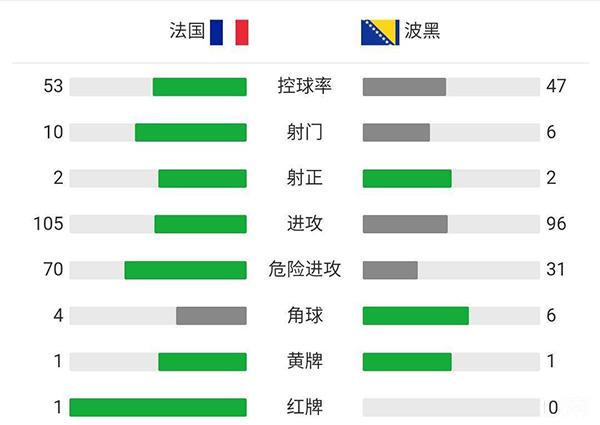 法国1-1波黑 哲科破门格列兹曼扳平孔德直红