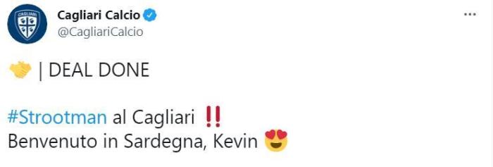 178直播讯 北京时间7月3日,卡利亚里官方宣布,从马赛租借签下荷兰中场斯特鲁特曼,租期1年。