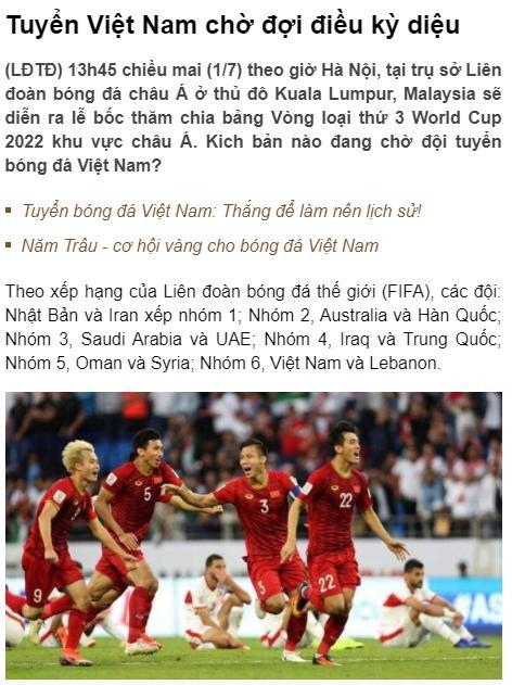 178直播讯 越南媒体Lao Động Thủ đô认为,如果越南能够与伊朗、澳大利亚、阿联酋以及中国同组,那么有可能会发生奇迹。