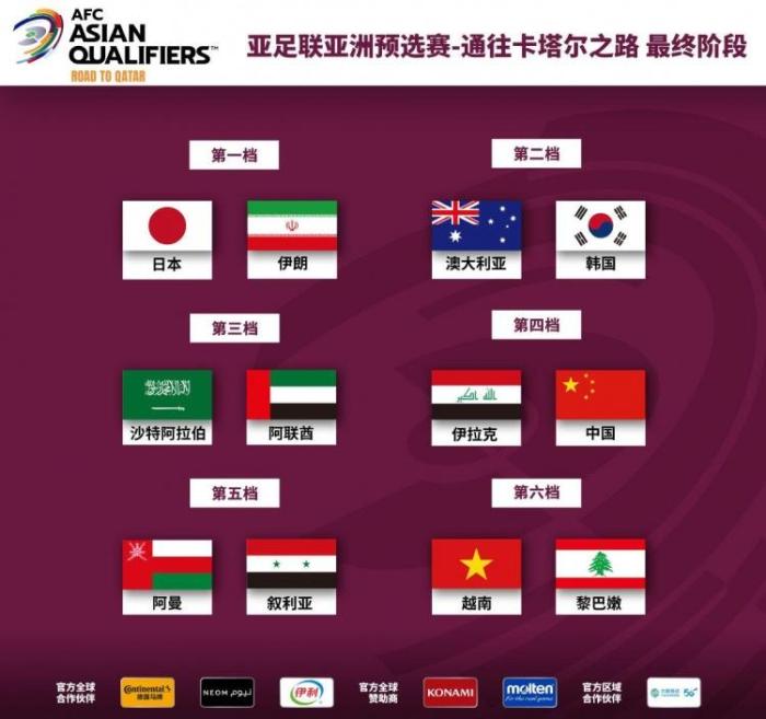 根据6月18日国际足联新一期的世界排名,12强赛参赛球队分档情况为: