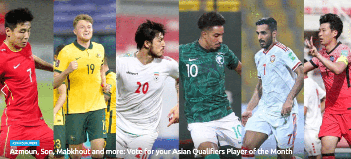 178直播讯 近日亚足联官网评选“亚足联月度最佳球员候选”,其中入选的一共有9名球员,分别是武磊(中国)、马瓦斯(叙利亚)、阿兹蒙(伊朗)、苏塔尔(澳大利亚)、南野拓实(日本)、萨勒姆(沙特)、法瓦兹(阿曼)、马布霍特(阿联酋)和孙兴慜(韩国);