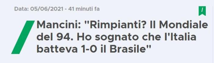 如果时间能倒流,我绝不会拒绝参加1994年世界杯。(当年曼奇尼因与意大利主帅萨基不和,拒绝了国家队的征召)