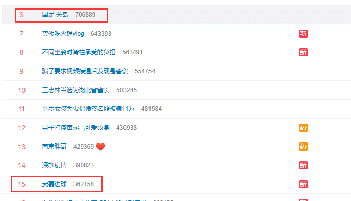 外界对于国足重新出征世预赛40强赛的关注度是非常高的,所以从一开始国足比赛的相关话题就登上热搜榜,其中包括了“国足 关岛”、“武磊进球”、“金敬道进球”等等话题,网友们也都热议国足的进球和比赛焦点镜头。