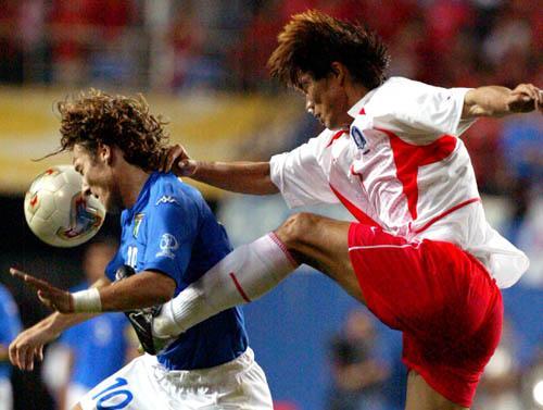 比赛开始后,虽然韩国队场面上进入了被动,莫雷诺开始了自己的工作,意大利男足核心托蒂在禁区被放倒,意大利球迷欢呼起来,他们认为意大利能够得到一个点球。