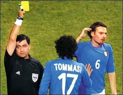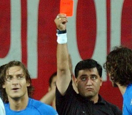 可是谁能想到莫雷诺不仅没有给点球,反而吹罚了托蒂假摔,将托蒂红牌罚下,更加让意大利球迷没有想到的是,这只是莫雷诺表演的开始。随后的比赛中,维埃里打进了一个漂亮的进球,可是莫雷诺吹罚了越位,这个进球也告吹。