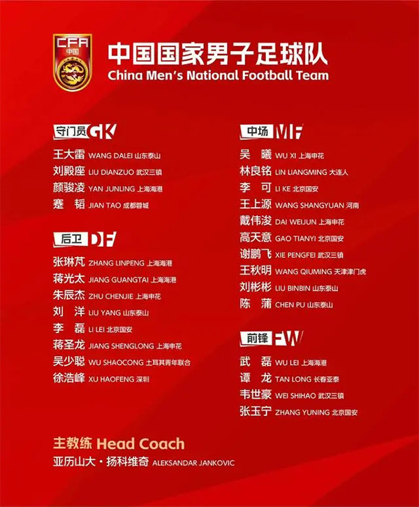 178直播12月13日 为备战卡塔尔亚洲杯决赛阶段的比赛,中国足协12日公布了中国男足国家队26人集训名单。武磊、韦世豪、蒋光太在列,成都蓉城门将蹇韬首次入选,归化球员艾克森无缘名单。