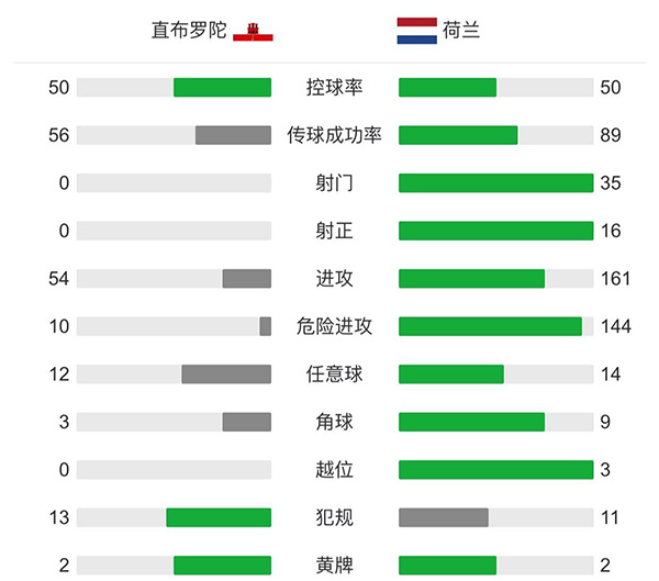 全场比赛结束,荷兰7-0直布罗陀。