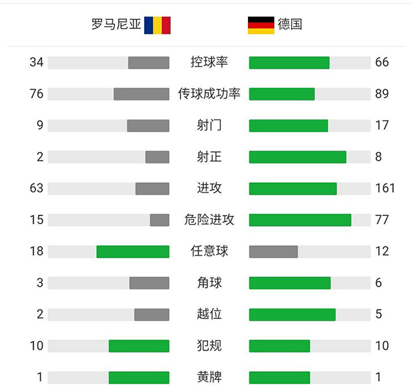 全场比赛结束,德国客场1-0战胜罗马尼亚。