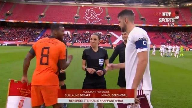 178直播讯 荷兰与拉脱维亚的世界杯预选赛目前正在进行中,本场比赛的主裁斯蒂芬妮-福莱拜特成为历史上首位吹罚男子世预赛的女性裁判。