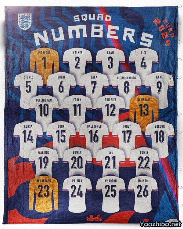178直播讯 英格兰公布欧洲杯26人号码,萨卡7号,贝林厄姆10号,阿诺德8号。