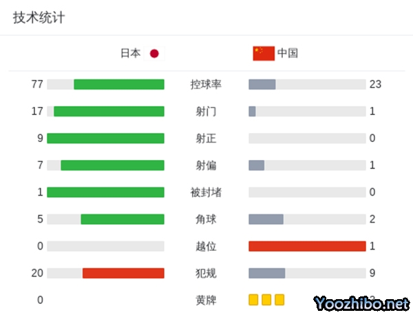 国足0-7负日本创历史最大分差 国足全场仅1射门2成控球