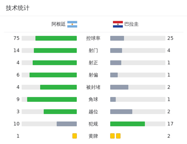 关键事件: 第3分钟,阿根廷闪击得手!左路角球开到禁区后点奥塔门迪凌空抽射破门,阿根廷1-0巴拉圭。