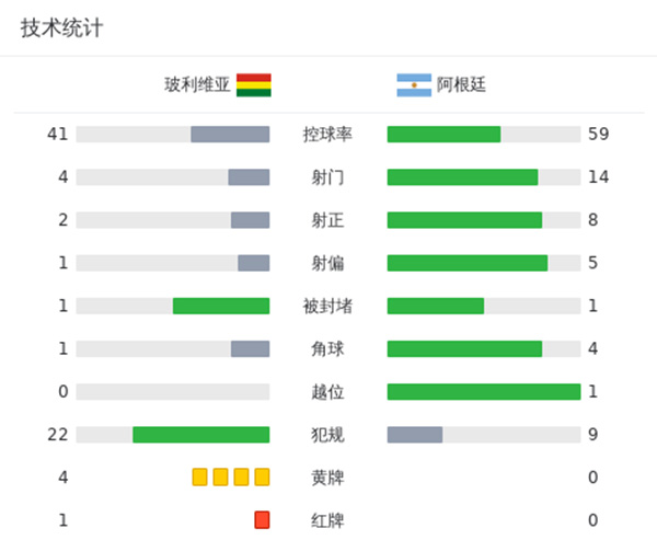 全场比赛结束,最终阿根廷3-0玻利维亚。