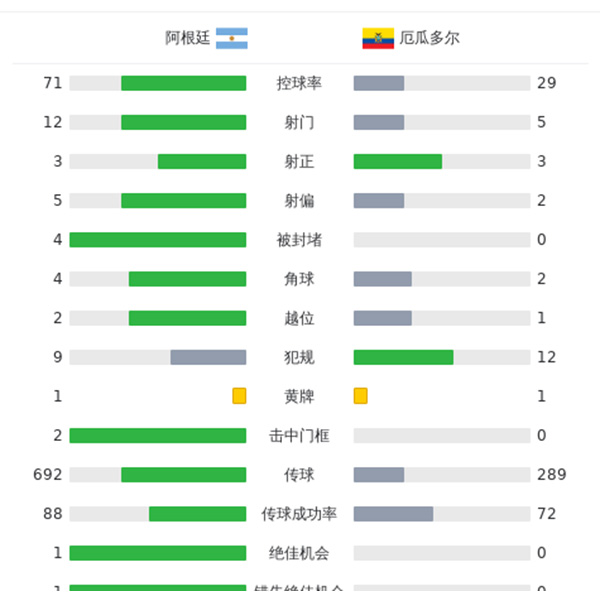 最终全场比赛结束,阿根廷1-0厄瓜多尔。