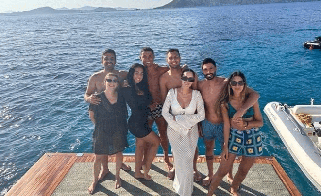 178直播讯06月27日最近C罗结束了一个赛季的征程之后开始享受假期,他和爱人乔治娜、孩子们以及亲友去意大利撒丁岛度假。还有国家队队友、效力于曼联的达洛特,两人的关系非常好,一起在海边和豪华游艇上享受惬意的生活。
