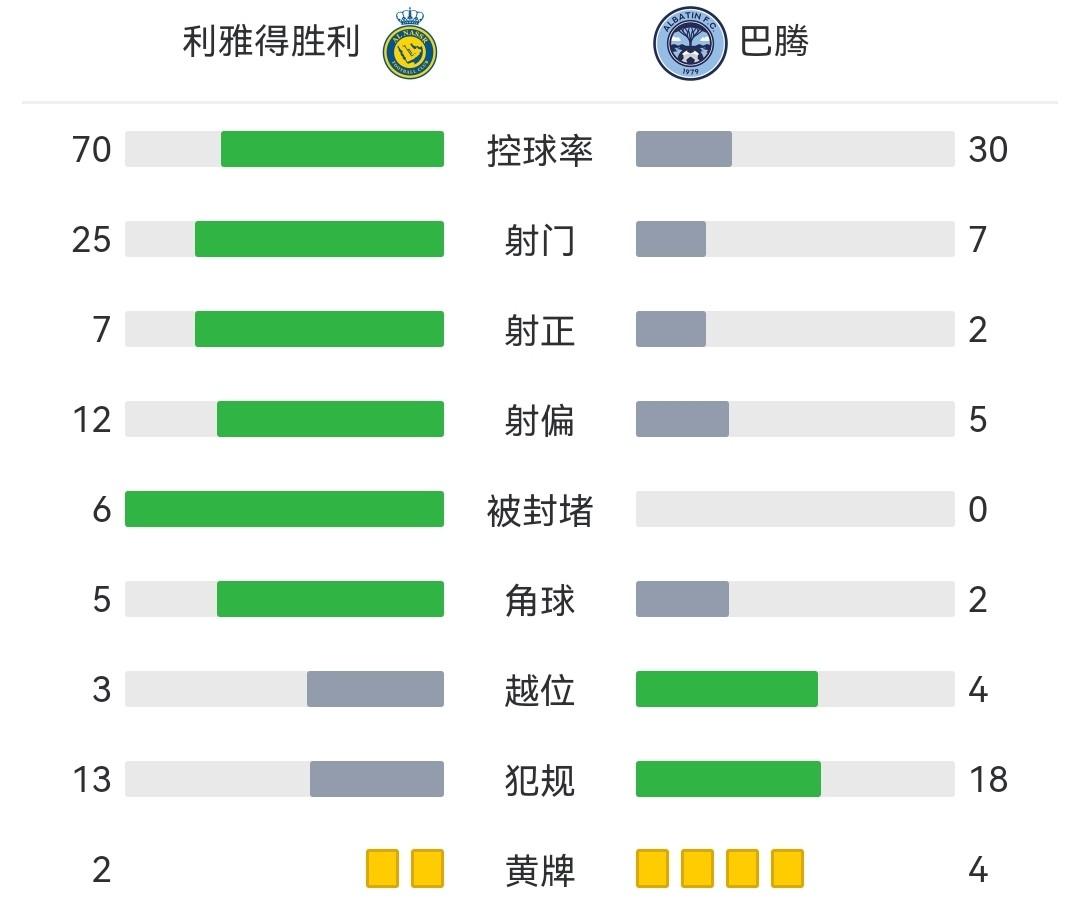 全场比赛结束,利雅得胜利3-1巴腾!