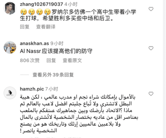外国的球迷直言利雅得胜利可以提高团队协作,并且引进新的中场和后防,毕竟今天的比赛C罗踢了各种位置,这也让他很不适应,无法将自己的能力发挥到最大,所以利雅得胜利还是需要引援。