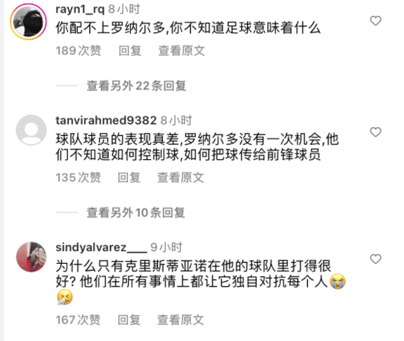 C罗率队无缘杯赛冠军,也引发了极大的关注度,外国球迷纷纷热议,通过评论可以看出,很多人都将责任归咎到利雅得胜利的实力不济,包括总裁带小学生,球队的中后场太差,即便是莫德里奇来了也没有用等等。甚至还有球迷怒斥利雅得胜利的主帅战术不到位等等,觉得C罗已经很努力了,但还是遗憾输了球。