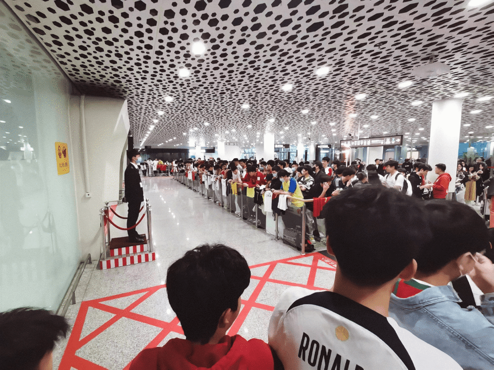 不出意外,绝大多数接机的球迷都是C罗的粉丝,他们分别身穿着C罗在皇马、尤文还有曼联以及葡萄牙国家队7号球衣,在机场翘首企盼偶像的到来。甚至还有球迷在机场,激动做出了C罗标志性的“SIU”庆祝动作。
