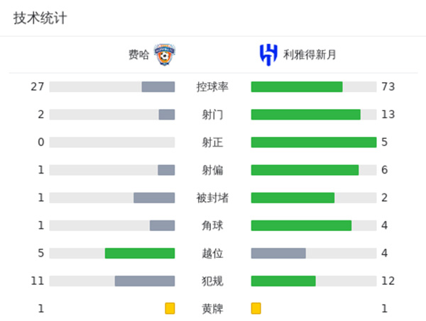 全场比赛结束,利雅得新月2-0击败费哈。